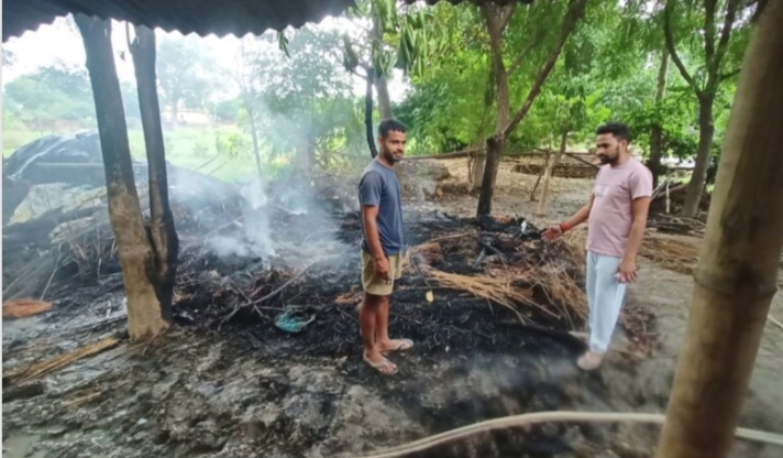 अज्ञात कारणों से झोपड़ी में लगी आग, हजारों का सामान राख