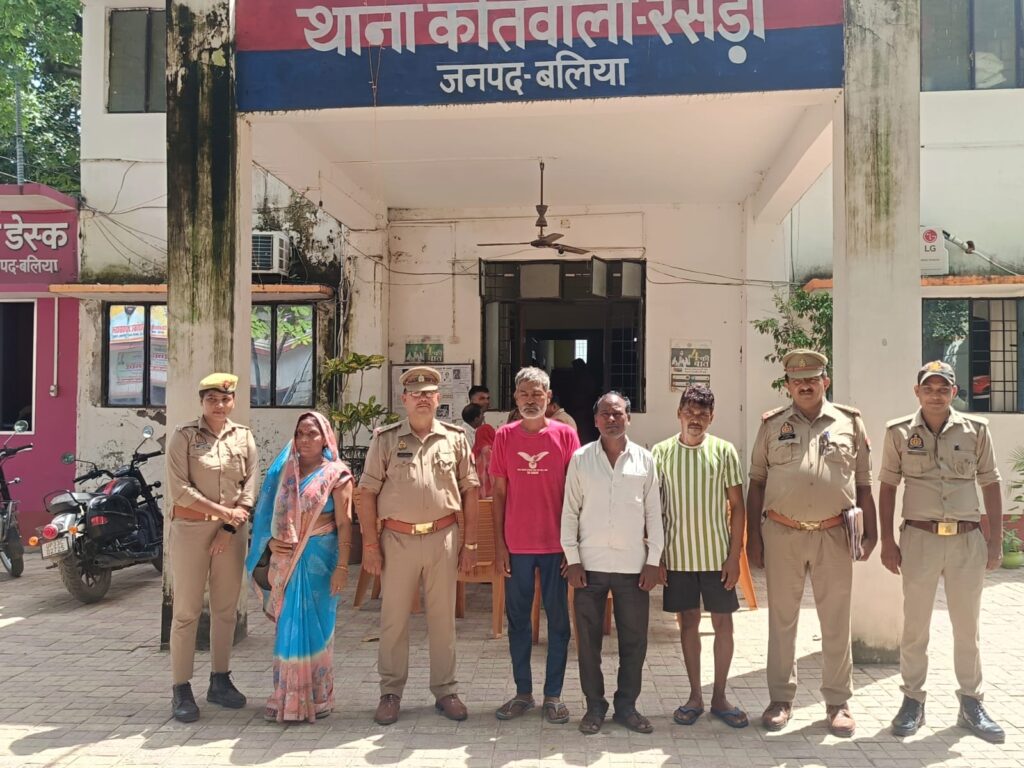 बलिया। रसड़ा पुलिस ने मुखबिर की सूचना पर धोखाधड़ी करने वाले वांछित चार अभियुक्तों को सोमवार की शाम भगत सिंह तिराहा के पास से गिरफ्तार कर न्यायालय भेज दिया। पूछताछ में अभियुक्तों ने अपना नाम व पता हरि प्रसाद गुप्ता पुत्र ब्रम्हदेव प्रसाद निवासी असनवार थाना गड़वार जनपद बलिया हाल पता 129 जीटी रोड मेंहदी बागान थाना बर्धमान जिला बर्धमान पूर्व पश्चिम बंगाल, रामप्रताप उर्फ राम प्रसाद पुत्र राजदेव राजभर व विनोद कुमार सुमन पुत्र राम सिंहासन निवासीगण असनवार थाना गड़वार जनपद बलिया और सरिता देवी पत्नी संतोष प्रसाद निवासी आलम के पुरा थाना पकडी जनपद बलिया हाल मुकाम इन्दरपुर थाना गड़वार जनपद बलिया बताया। इनके विरूद्ध न्यायालय एसीजेएम प्रथम बलिया के यहां से तीन अप्रैल 2025 को गैर जमानतीय वारंट (NBW) जारी किया गया था। अभियुक्तगण लगातार फरार चल रहे थे। इनके विरुद्ध धारा 419, 420, 467,468,471 भादवि थाना रसड़ा जनपद बलिया में पंजीकृत था।