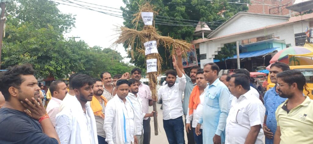 सपा के राष्ट्रीय अध्यक्ष अखिलेश का भाजपा कार्यकर्ताओं ने पुतला किया दहन, लगाए नारे