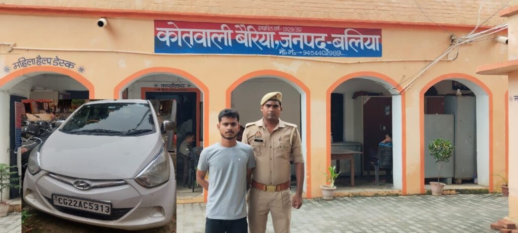 बलिया। बैरिया पुलिस ने मुखबिर की सूचना पर घनश्याम केशरी गोलीकांड के वांछित अभियुक्त पीयूष सिंह पुत्र राकेश सिंह निवासी तालिबपुर थाना बैरिया जनपद बलिया को चिरैया मोड़ हनुमान मंदिर के पास से सोमवार की रात गिरफ्तार कर अग्रिम कार्रवाई करते हुए न्यायालय में मंगलवार को पेश किया। वहीं घटना प्रयुक्त हुन्डई कार धारा 207 MV Act में सीज कर दिया। पकड़े गए अभियुक्त के विरुद्ध बैरिया थाने में करीब 15 मुकदमे पहले से ही दर्ज है। विवेचना में रेवती थाना क्षेत्र के पियरौटा निवासी कुनाल सिंह पुत्र अजीत सिंह का नाम प्रकाश में आने पर पुलिस गिरफ्तार कर जेल भेज चुकी है। जबकि तीन आरोपी अब भी पुलिस की गिरफ्त से दूर है।