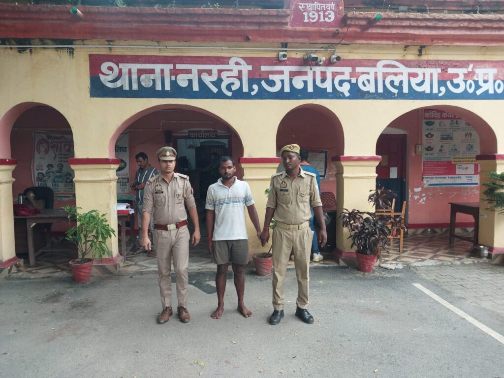 बलिया। नरही पुलिस ने मुखबीर की सूचना पर रविवार को कोरंटाडीह चौकी से करीब 100 मीटर आगे नसीरपुर मठ के पास से चेकिंग के दौरान एक ट्रक को पकड़ा। जिसकी जांच की तो उसमें 17 पशु क्रूरता के साथ लदे पाए गए। जिसमें 13 गाय, दो बछिया व दो बछड़े शामिल थे। वही पुलिस ने गो-तस्कर राकेश यादव पुत्र हृदयानन्द यादव निवासी तिलक राय का हाता राजपुर थाना सिमरी जनपद बक्सर बिहार को गिरफ्तार कर संबंधित धाराओं में मुकदमा दर्ज कर न्यायालय में पेश किया। वहीं पकड़े गए ट्रक को एमवी एक्ट के तहत कार्रवाई करते हुए सीज कर दिया गया।