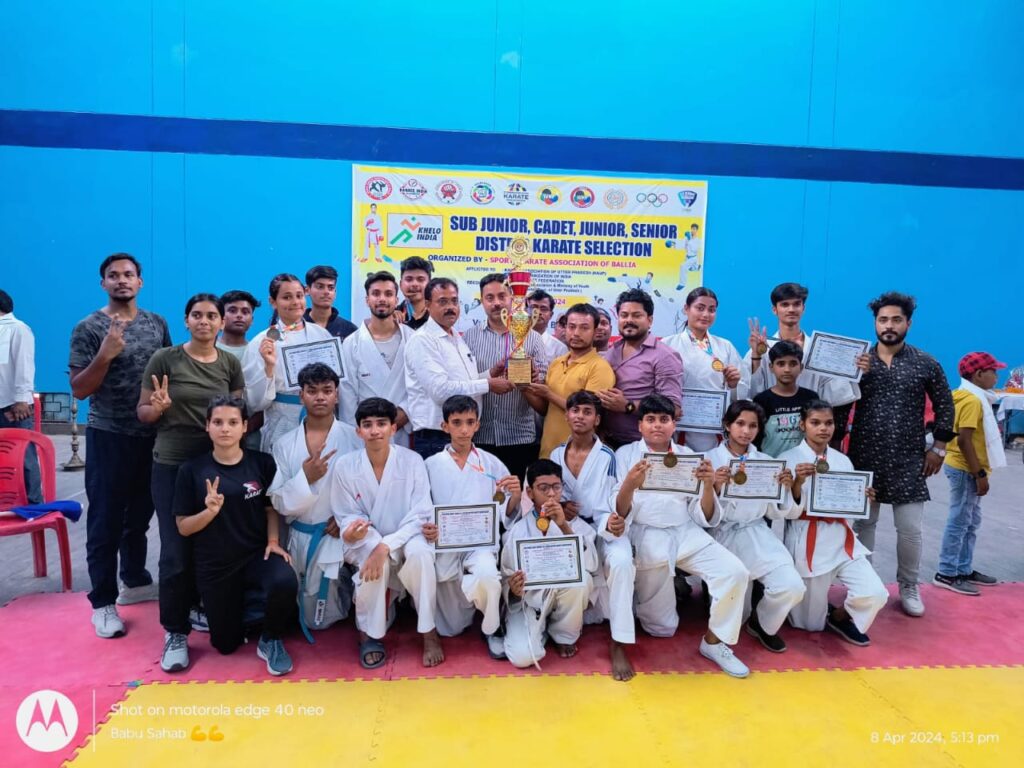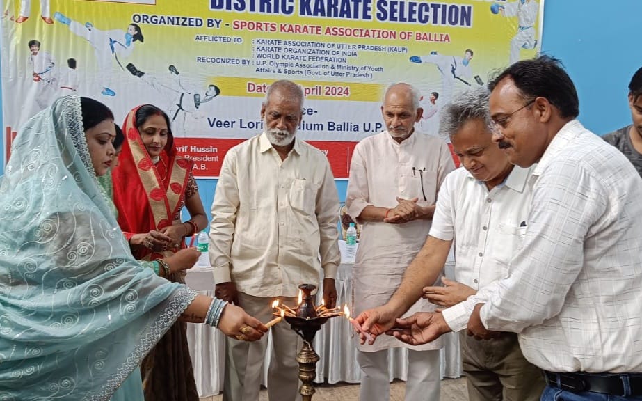 बलिया। स्पोर्ट्स कराटे एसोसिएशन ऑफ बलिया के तत्वावधान में सब जूनियर, कैडेट, जूनियर, अंडर 21 व सीनियर सिलेक्शन एंड डिस्ट्रिक्ट कराटे चैंपियनशिप 2024 का आयोजन वीर लोरिक स्पोर्ट्स स्टेडियम बलिया में संपन्न हुआ। प्रतियोगिता का शुभारंभ टाउन इंटर कालेज के प्रधानाचार्य डॉ.अखिलेश सिन्हा, एसोसिएशन के चेयरमैन कन्हैया पाण्डेय, संजय कश्यप, सुमन वर्मा, रमिता सिंह, रिंकू देवी, शालिनी सिंह रामकुमार तिवारी ने दीप प्रज्जवलित कर संयुक्त रूप से किया।