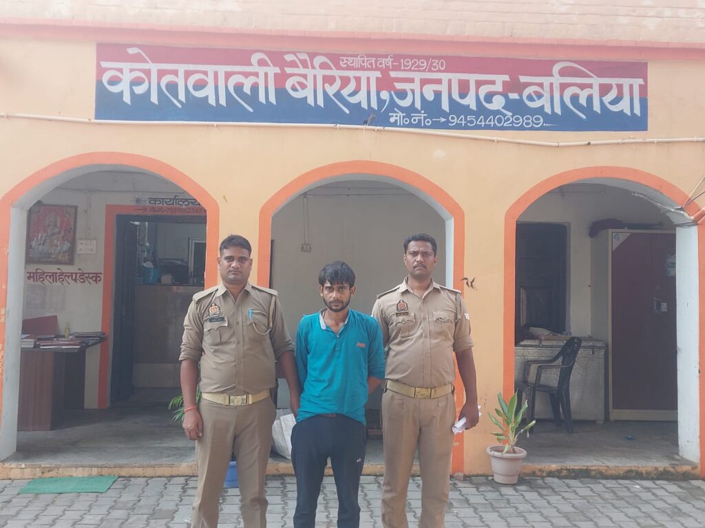 बलिया। मुखबीर की सूचना पर बैरिया पुलिस ने रविवार को मासूम बेटे की हत्या करने वाले पिता रुपेश तिवारी पुत्र कमलेश तिवारी निवासी सुरेमनपुर थाना बैरिया बलिया को सुरेमनपुर रेलवे क्रासिंग से 100 मीटर पहले गिरफ्तार कर संबंधित धाराओं में मुकदमा दर्ज कर न्यायालय भेज दिया। वहीं घटना में प्रयुक्त गड़ासा को अभियुक्त के निशानदेही पर बरामद कर लिया।