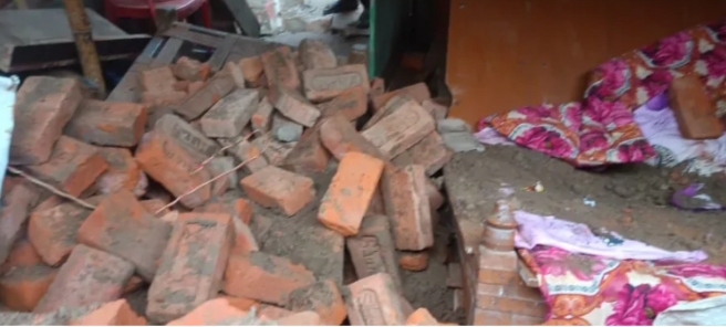 बलिया: रिमझिम बारिश में अचानक गिरी ईंट की दीवार, मलवे दबकर दो सगे भाई समेत तीन घायल