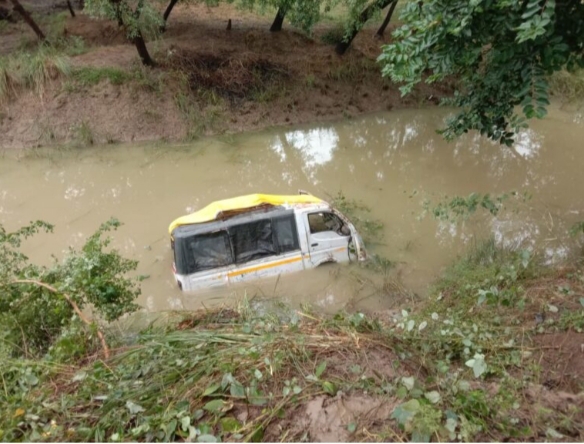 सवारियों से भरी मैजिक चांदनाला पुल के पास गड्ढे में पलटी, आधे दर्जन लोग घायल