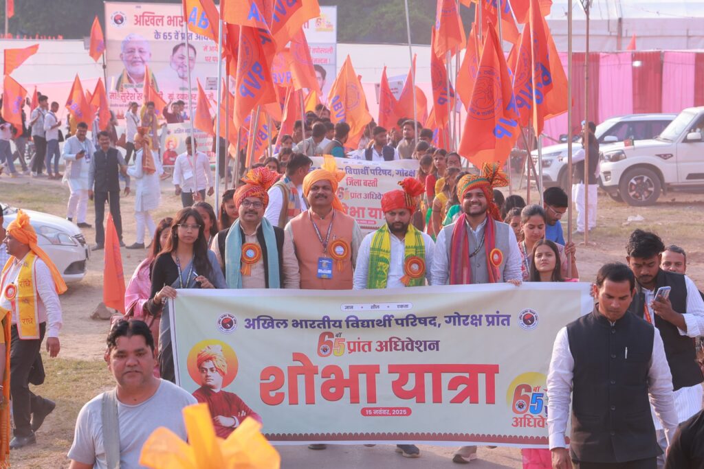 अभाविप के 65वे प्रांत अधिवेशन पर नगर में निकली भव्य शोभायात्रा