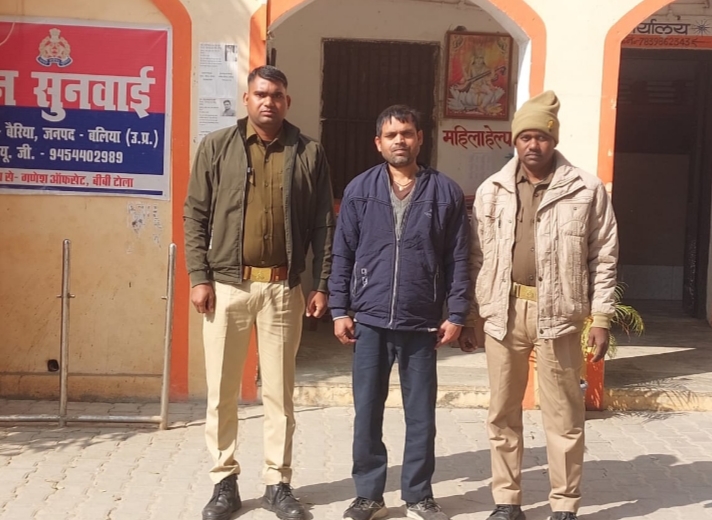 बलिया। दोकटी थाना क्षेत्र के एक गांव में ममेरे भाई की पत्नी से दुष्कर्म करने और उसका वीडियो बनाकर सोशलमीडिया पर वायरल करने के आरोपी मनोज यादव निवासी इब्राहिमाबाद को बुधवार की रात इब्राहिमाबाद अग्निशमन केंद्र के पास से गिरफ्तार कर शुक्रवार को न्यायालय भेज दिया। इस बाबत क्राइम इंस्पेक्टर अशोक दत्त त्रिपाठी ने बताया कि आरोपी ने पीड़िता के घर जाकर दुष्कर्म किया और उसका वीडियो बनाकर बाद में सोशलमीडिया पर वायरल कर दिया। यह घटना फरवरी 2025 की है। इस मामले में दोकटी पुलिस द्वारा प्राथमिकी जनवरी 2026 के प्रथम सप्ताह में उच्चाधिकारियों के हस्तक्षेप के बाद बीएनएस की धारा 64, 351(3) एवं आईटी एक्ट की धारा 67-ए में मुकदमा दर्ज किया गया था।