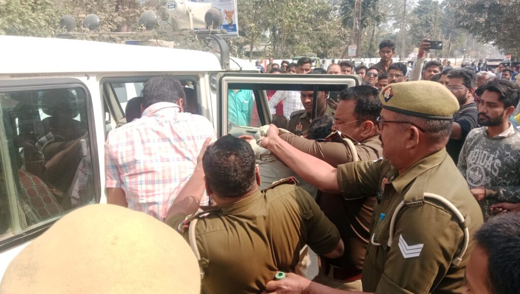 प्रत्यक्षदर्शियों के अनुसार घटना के लगभग 20 मिनट बाद सिविल लाइन पुलिस मौके पर पहुंची। इसके बाद पुलिस ने मारपीट का शिकार हुए युवक को हिरासत में ले लिया। युवक पुलिस से कहते हुए नजर आया, “आप लोग जान से मरवाएंगे हमको। कोतवाली में मारेंगे। मैं पागल नजर आ रहा हूं।” युवक ने विरोध भी किया, लेकिन पुलिस उसे जबरदस्ती वाहन में बैठाकर कोतवाली ले गई। इस संबंध में क्षितिज त्रिपाठी, प्रभारी निरीक्षक कोतवाली ने बताया कि दोनों पक्षों से एक-एक व्यक्ति को थाने लाया गया है। मामले में आवश्यक कानूनी कार्रवाई की जा रही है।