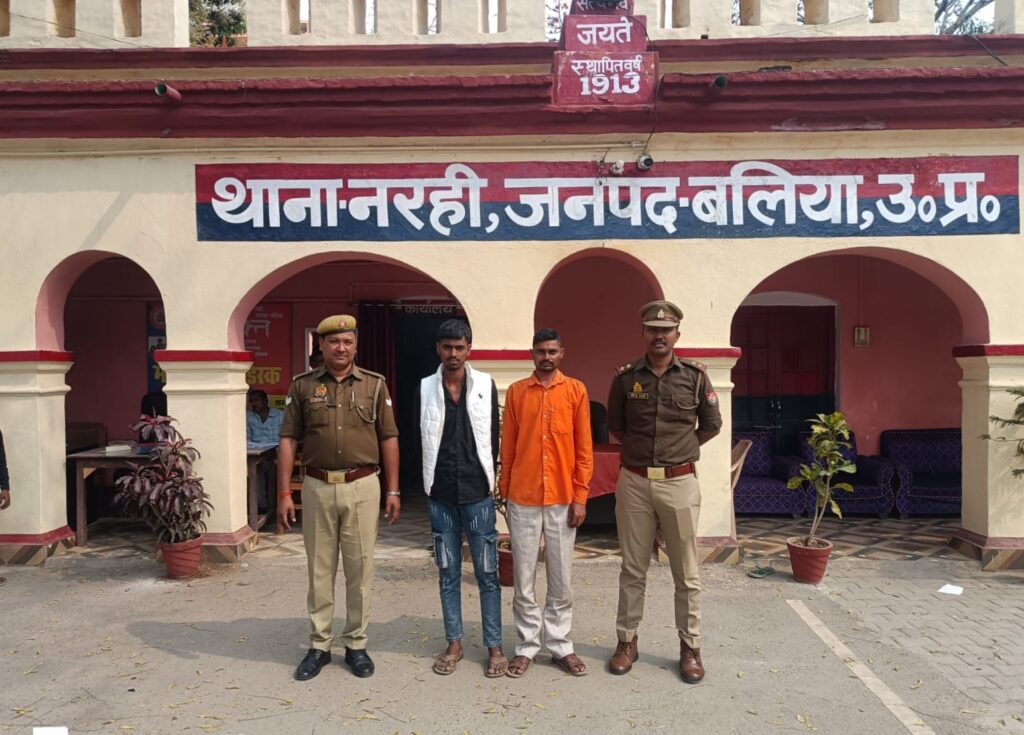 बलिया। नरही पुलिस ने गैंगेस्टर एक्ट में वांछित दो अभियुक्तों को मुखबिर की सूचना पर कार्रवाई करते हुए सोहांव गड़ेरवा मैदान के सामने मुख्य मार्ग के पास से गिरफ्तार कर न्यायालय भेज दिया। पूछताछ में गिरफ्तार अभियुक्तों ने अपना नाम व पता उमाशंकर यादव पुत्र स्व. प्रभुनाथ यादव निवासी भरौली थाना नरही जनपद बलिया तथा अमरजीत यादव पुत्र श्यामप्रीत यादव निवासी सोहांव थाना नरही जनपद बलिया बताया। दोनों अभियुक्त थाना नरही में दर्ज धारा 2/3(1) उत्तर प्रदेश गैंगेस्टर एक्ट में वांछित थे।
