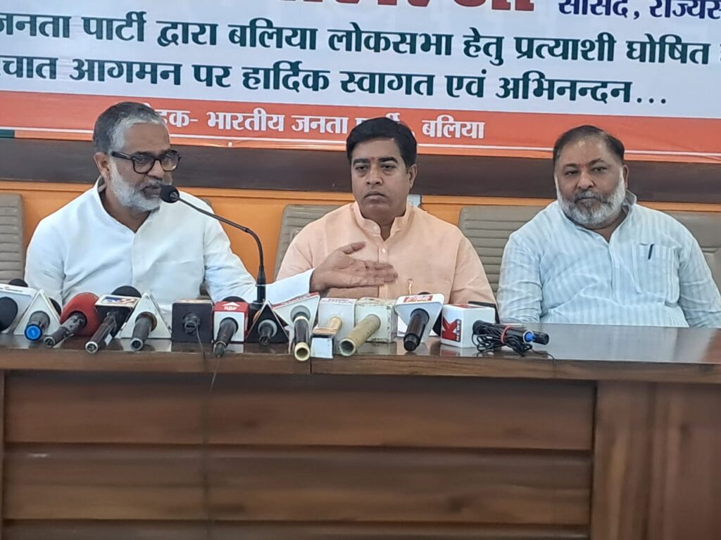 बलिया। उत्तर प्रदेश सरकार में स्वतंत्र प्रभार मंत्री दयाशंकर सिंह ने मंगलवार को पार्टी कार्यालय पर प्रेसवार्ता की तथा लोकसभा चुनाव 2024 के लिए नया नारा देते हुए कहा कि 80 बनेगा आधार, एनडीए 400 पार, फिर एक बार मोदी सरकार। जीराबस्ती स्थित पार्टी कार्यालय में मंगलवार को आयोजित प्रेसवार्ता को संबोधित करते हुए कहा कि देश का गरीब, युवा, अन्नदाता और नारी शक्ति ही भारतीय जनता पार्टी के संकल्प पत्र के चार आधार हैं।