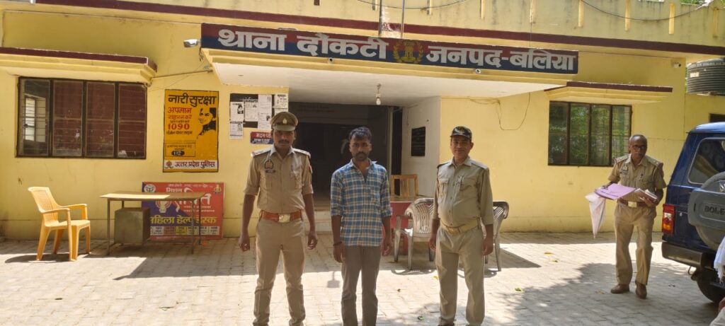 बलिया। मुखबीर की सूचना पर दोकटी पुलिस ने शुक्रवार को चिरैया मोड़ के पास से अभियुक्त
