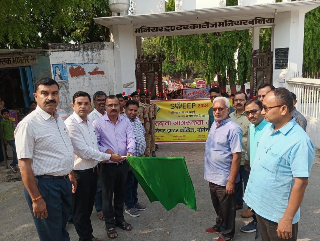 बलिया। जिला विधालय निरीक्षक बलिया के आदेश के क्रम में बुधवार को मनियर इण्टर कालेज मनियर बलिया, प्राथमिक विधालय के छात्रों एवं शिक्षकों द्वारा मतदाता जागरूकता रैली निकाली गई। रैली को बीईओ मनियर पवन कुमार सिंह व मनियर इण्टर कालेज के प्रधानाचार्य संजीव कुमार शुक्ला ने संयुक्त रूप से हरी झंडी दिखाकर रवाना किया।