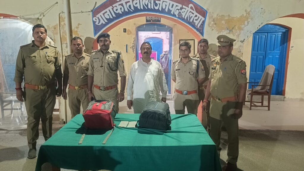 बलिया। लोकसभा चुनाव के मद्देनजर जनपद में अपराध एवं अपराधियों के विरुद्ध चलाए जा रहे अभियान के क्रम में शहर कोतवाली पुलिस एवं आबकारी विभाग की टीम ने संयुक्त रूप से कार्रवाई करते हुए शनिवार की शाम नगर के गौशाला रोड स्थित एक मकान में मुखबिर की सूचना पर छापेमारी की। जहां से दो बैग से 1605 ट्रैट्रा पैक खाली रैपर बरामद किया। इसके अलावा शराब तस्कर को गिरफ्तार कर संबंधीत धाराओं में मुकदमा दर्ज कर न्यायालय भेज दिया। पूछताछ में अभियुक्त ने अपना नाम व पता छितेश्वर प्रसाद पुत्र स्व दीनानाथ प्रसाद निवासी सहतवार थाना सहतवार जनपद बलिया तथा वर्तमान पता गौशाला रोड कदम चौराहा थाना कोतवाली जनपद बलिया बताया।
