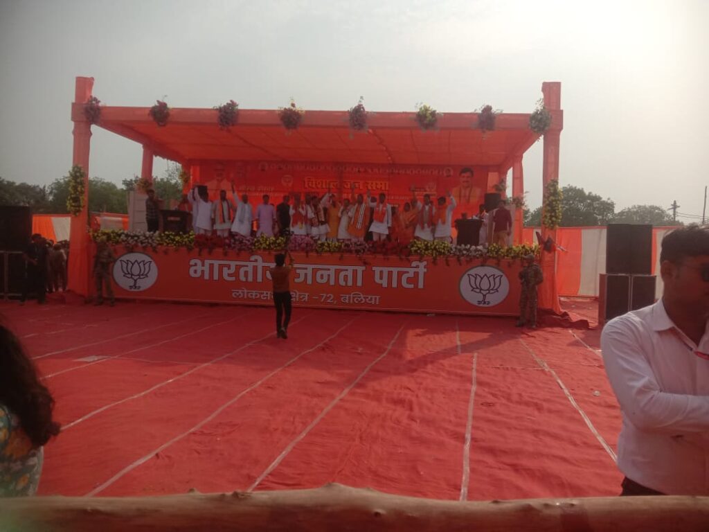 कहा कि 2014 के बाद से भारत में विकास की लकीर नरेंद्र मोदी के नेतृत्व में खींची जा रही है।उन्होंने सपा व कांग्रेस पर प्रहार करते हुए कहा कि एक ही परिवार के लोग सत्ता के लालच में भारत को गिरवी रखने का काम कर रहे हैं। देश से भय भूख व भ्रष्टाचार मिटाना है तो 2024 में कमल का बटन दबाकर अपने जिले से नीरज शेखर को संसद बनाकर संसद में भेजें। नीरज शेखर की जीत नरेंद्र मोदी की जीत होगी। मुख्यमंत्री ने अपने संबोधन में कहा कि जैसे राम ने दुष्ट रावण का संघार कर असत्य पर सत्य का विजय दिलवाया। इस तरह नरेंद्र मोदी ने अयोध्या में राम मंदिर का निर्माण कर भारत में रामराज्य कायम किया। सभा को संबोधित करते हुए लोकसभा के प्रत्याशी नीरज शेखर में सभी जनता जनार्दन से अपील किया कि आप लोग एक जून को कमल का बटन दबाकर बलिया से भारतीय जनता पार्टी को ऐतिहासिक मतों से जीत देकर अपने इस बेटे को संसद में भेजें, ताकि वह आपकी आवाज को दिल्ली के संसद में उठा सके। इसके पहले सभा को पूर्व मंत्री उपेंद्र तिवारी, पूर्व सांसद भरत सिंह, जिला अध्यक्ष संजय यादव, पूर्व विधायक सुरेन्द्र सिंह, राज्य सभा सांसद विवेक ठाकुर, राजीव मोहन चौधरी, अय्योध्या प्रसाद हिन्द, अर्जुन साह,राजनरायन तिवारी, योगेन्द्र ओझा, अरुण सिंह बंटू,अरविन्द सिंह सेंगर, अरुण सिंह, मृत्युंजय तिवारी, आदित्य तिवारी,अवनिंन्द्र ओझा, आलोक कुंवर, शिवजी सिंह, धर्मवीर सिंह आदि थे।
