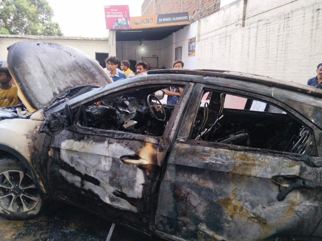 रिपेयरिंग के लिए आई कार में लगी आग, लैपटॉप भी जला