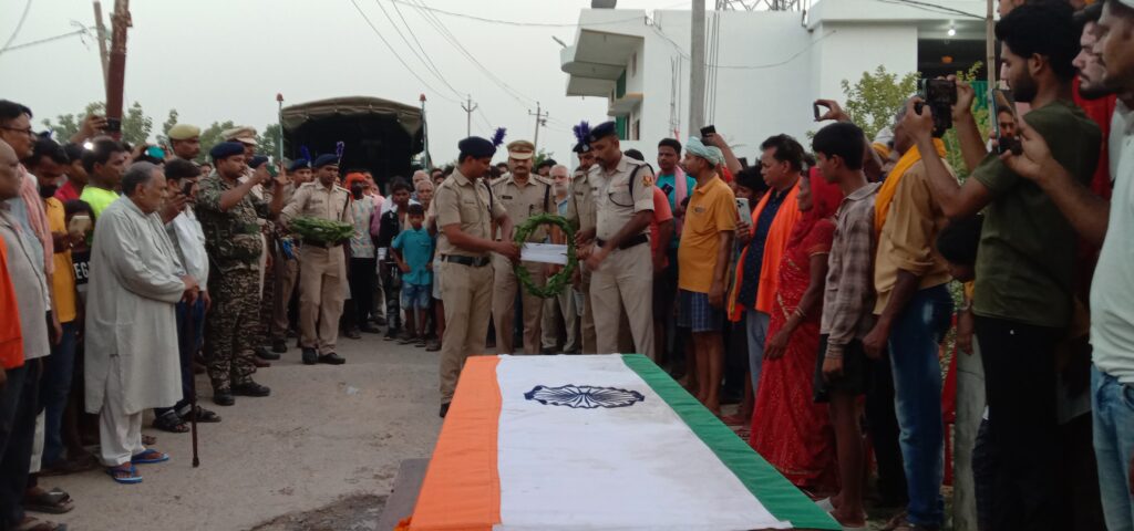 बलिया। फेफना थाना क्षेत्र के मिड्ढा गांव निवासी रामायण प्रसाद 55 वर्ष पुत्र स्व श्रीराम प्रसाद की हीट वेव से वाराणसी स्टेशन पर रविवार की रात करीब एक बजे मौत हो गई। सूचना पर पहुँची जीआरपी ने परिजनों को घटना से अवगत कराया। जिसके बाद परिजन वाराणसी के लिए रवाना हो गए। जैसे ही सीआरपीएफ जवान का शव सोमवार की शाम गांव पहुँचा वैसे ही परिवार सहित आमजन की आंखे नम हो गई। इस दौरान सीआरपीएफ 95 बटालियन वाराणसी के असिस्टेंट कमांडर हनुमान प्रसाद, इंस्पेक्टर अमित कुमार तथा फेफना के सब इंस्पेक्टर सुधीर कुमार ने सीआरपीएफ जवान के शव पर पुष्प गुच्छ चढ़ाकर नमन किया।