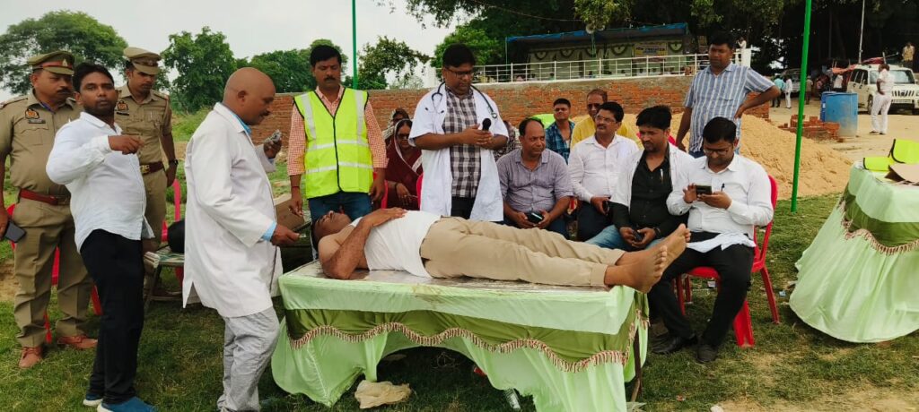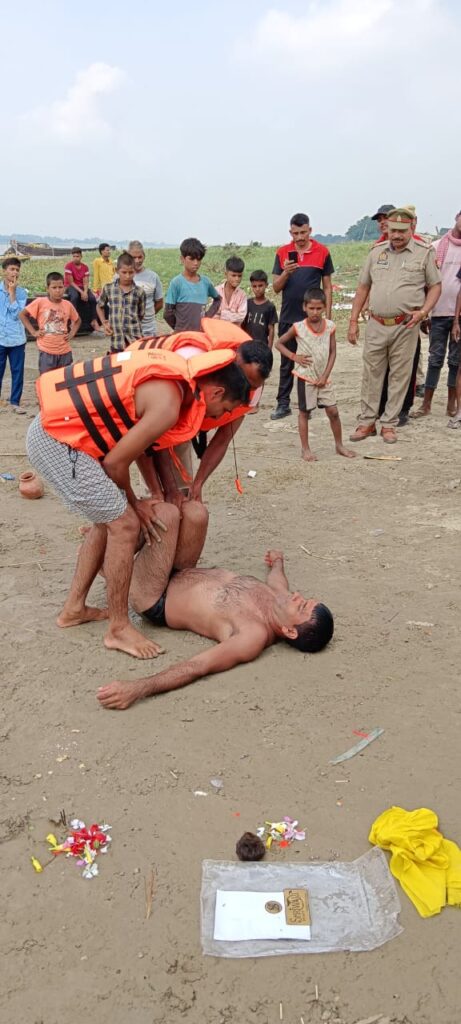 बलिया। नदियों में बढ़ रहे जलस्तर को देखते हुए जिला प्रशासन अभी से अलर्ट मोड पर आ गया है। जिलाधिकारी प्रवीण कुमार लक्षकार के निर्देश पर गुरूवार को गंगा नदी के उजियार घाट पर बाढ़ के दौरान किसी भी प्रकार की आपदा से निपटने के लिए मॉक ड्रिल (मूक अभ्यास) किया गया। इसमें बाढ से दौरान किसी के डूबने पर बचाव कार्य तथा पानी से घिरे गांवों से लोगों को निकालने का अभ्यास किया गया। वहां गोष्ठी आयोजित कर बाढ़ प्रभावित इलाकों में दवा वितरण या कीटनाशक दवाओं का छिड़काव करने से लेकर लोगों के स्वास्थ्य व पशुओं का भी ख्याल रखने के तरीकों के बारे में बताया गया।