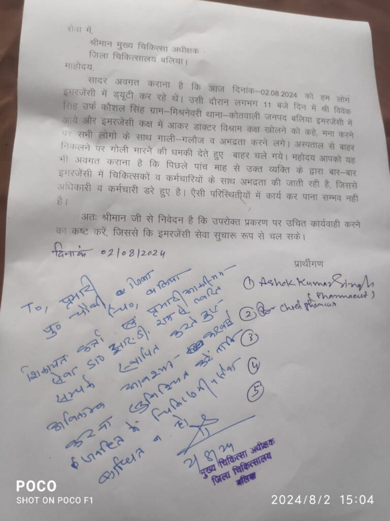 बलिया। जिला अस्पताल में शुक्रवार को फार्मासिस्ट और एक मनबढ़ युवक के बीच चिकित्सक के विश्राम कमरे को खोलने को लेकर कहासुनी हो गई। मामला इतना तूल पकड़ा कि युवक ने हाथापाई करते हुए गोली मारने की धमकी फार्मासिस्ट को दे डाली। इसके बाद नाराज स्वास्थ्यकर्मियों ने करीब एक घण्टे तक इमरजेंसी सेवा बंद कर सीएमएस के चेंबर में जाकर बैठ गए। इसके बाद फार्मासिस्ट ने मनबढ़ युवक के विरुद्ध सीएमएस को तहरीर दिया। जिसे सीएमएस ने कोतवाली को स्थानांतरित कर दिया।
