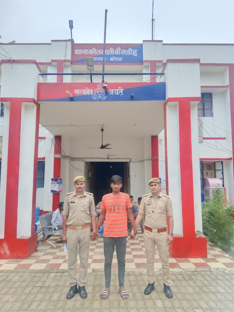 बलिया। पुलिस अधीक्षक विक्रान्त वीर द्वारा अपराधियों के विरूद्ध चलाये जा रहे अभियान के क्रम में बासडीह पुलिस ने मंगलवार को बड़सरी बैरियर के पास से पाक्सो एक्ट के आरोपी को गिरफ्तार के चालान कर दिया। पकड़े गए अभियुक्त ने पूछताछ में अपना नाम व पता अमित कुमार प्रसाद पुत्र स्व संजय कुमार प्रसाद निवासी मूल निवासी पश्चिम टोला कस्बा बाँसडीह थाना बाँसडीह बलिया तथा वर्तमान पता मानसपुर थाना चिचुरा जिला हुगली पश्चिम बंगाल बताया।
