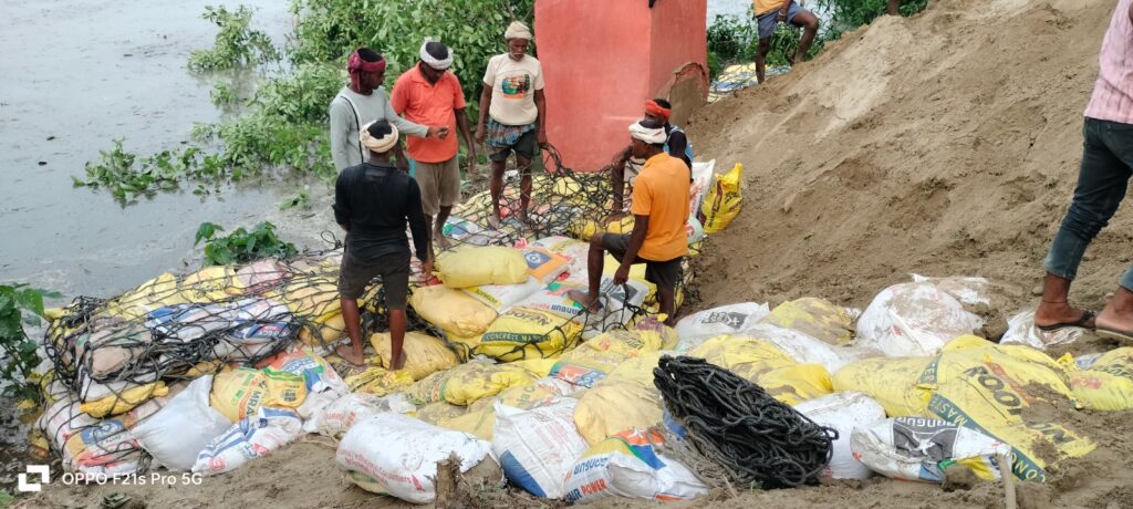 बलिया। टीएस बंधे पर क्षेत्र के विषौली गांव के हसनपुरा के पास सोमवार की सुबह सरयू नदी से बांध कटने व पानी रिसाव की सूचना से हड़कंप मच गया। मौके पर पहुंचे बाढ़ विभाग व प्रशासन ने कटान से बांध के ध्वस्त हिस्सा पर काबू पाया। ग्रामीणों ने आरोप लगाया है कि हर घर जल योजना में बंधा पर जेसीबी से खोदने की वजह से कटान हुआ हैं।कर्मचारियों के साथ पंहुचे बाढ़ विभाग के अधीक्षण अभियंता संजय मिश्र ने गिट्टी व मिट्टी की भराई शुरू कराया। दलदल एरिया में टीएस बंधा पर लम्बी दूरी में मिट्टी डालने का कार्य चल रहा था। सरयू नदी लगातार चार दिनों से बढ़ाव पर हैं। हसनपुरा के पास रविवार को पानी बंधे से दूर था, लेकिन रात में अचानक तेजी से पानी बंधा के पास आ गया। ग्रामीणों ने आरोप लगाया कि जल निगम ने एक सप्ताह पूर्व हर घर नल योजना में टीएस बंधा पर नदी साइड ही पाइप डाला था, लेकिन पाइप डालने के बाद अच्छी तरह से मिट्टी की भराई नहीं किया था। इसके कारण ही सरयू नदी से पानी रिसाव व कटान होने लगा। कटान से टीएस बंधा का एक तिहाई हिस्सा नदी के पानी में विलीन हो गया था। अधिकारियों के पंहुचने से पहले ग्रामीणों ने मिट्टी व खर पतवार बांस आदि से कटान रोकने का प्रयास किया। चांदपुर, महाराजपुर से पंहुचे बाढ़ विभाग के कर्मचारियों ने कटान पर काबू कर लिया था। इस दौरान भाजपा नेता विश्राम सिंह, एसडीएम अभिषेक प्रियदर्शी, तहसीलदार निखिल शुक्ल लल्लन यादव, प्रभुनाथ गुप्ता आदि थे।