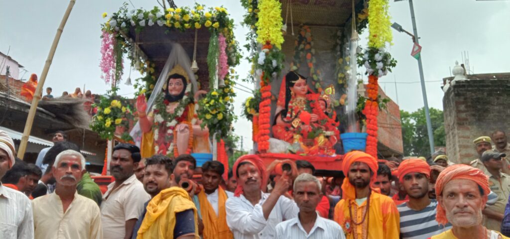 इसके बाद जुलूस गिरवर दास के कुटिया पर पहुंचा, वहां हनुमान जी के पूजन-अर्चन के बाद बाजार स्थित शिवालय के लिए रवाना हुआ। यहां मंदिर में पूजन अर्चन के बाद महावीरी झंडा जुलूस गांव के पश्चिम स्थित गोरथाना पोखरा शिवालय, गांव के पूरब मां काली मंदिर स्थित महावीर चबूतरा पर पहुंचा। वहां हनुमान जी का विधिवत पूजन-अर्चन किया गया। मंदिर के पास स्थित अखाड़े पर जनपद व गैर जनपद से आए पहलवानों ने कई दांव पेंच दिखाकर दर्शकों को आश्चर्यचकित कर दिया।