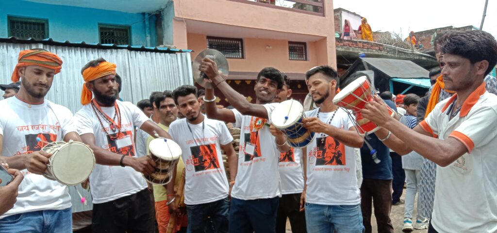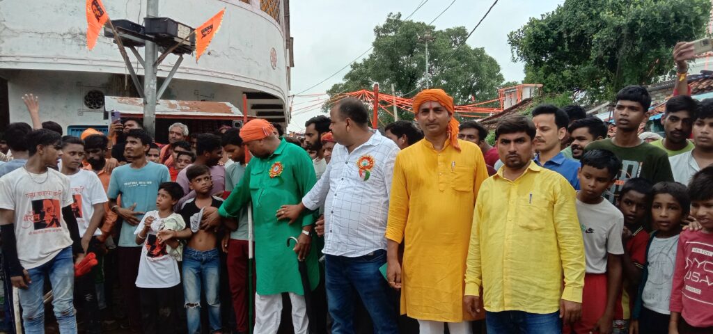 महावीरी झंडा जुलूस स्व. केदार शाह के दरवाजे पर समाजसेवी कामता सिंह ने हनुमान जी का पट खोला व पूजन-अर्चन किया। इसके बाद जुलूस करने के बाद गांव के मुख्य मार्ग होते हुए बाजार पहुंचा, जहां अखाड़े के नौजवानों ने एक से बढ़कर एक करतब दिखाए।