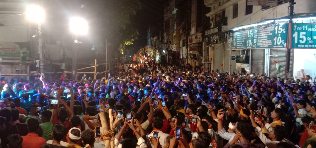 बलिया। महावीरी झंडा जुलूस को देखने के लिए युवाओं, बुजुर्गो के साथ-साथ महिलाएं व बच्चें नगर के विभिन्न मार्गो पर शाम से ही डटी रही। आलम यह था कि जुलूस निकलने वाले मार्गो पर तिल पर जगह तक नहीं बची थी। इस दौरान महिलाओं व बच्चों ने झांकी व जुलूस के साथ ही चाट, छोला, पकौड़े, गोलगप्पा आदि का जमकर लुत्फ उठाया।