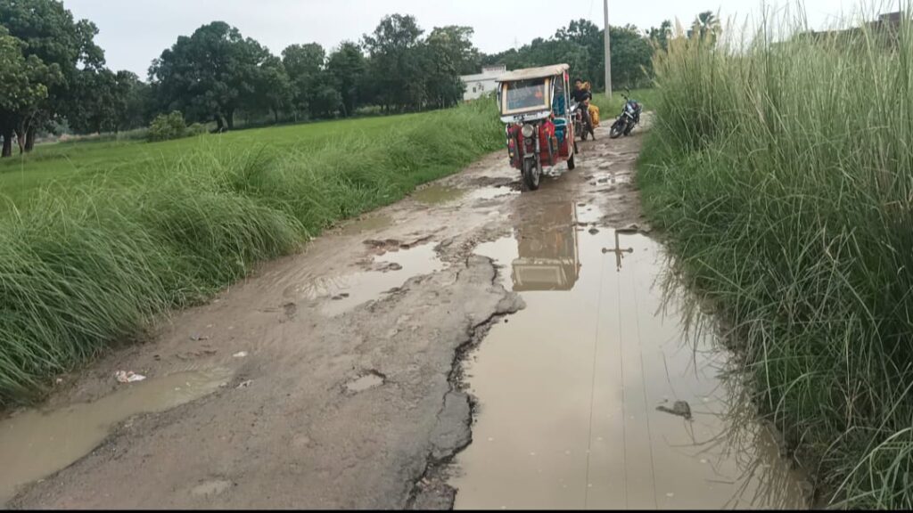 – सड़क पर बने गड्ढों के कारण आए दिन बाइक सवार गिरकर हो रहे घायल