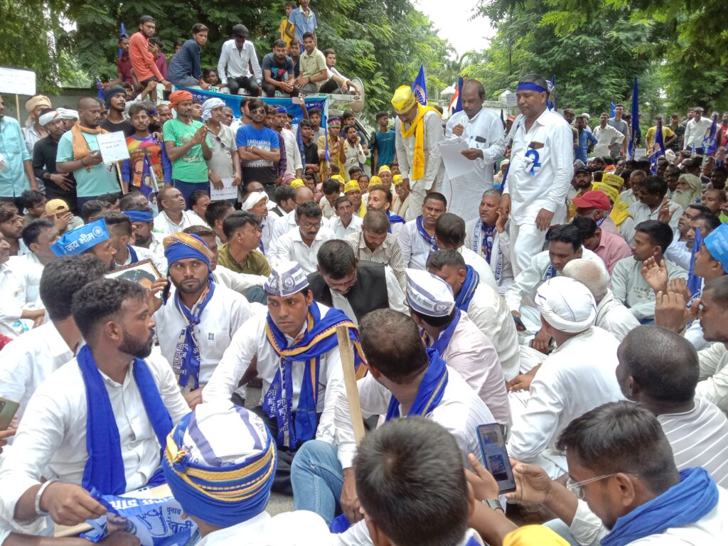 आरक्षण में छेड़छाड़ बंद करो, नहीं तो कुर्सी छोड़ो का लिखा स्लोगन