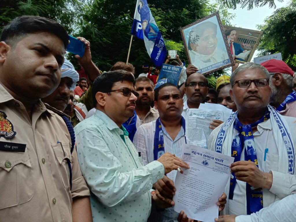 बसपा व भीम आर्मी ने कलेक्ट्रेट पर किया प्रदर्शन