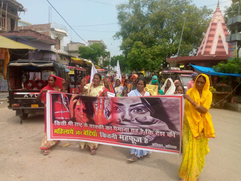 बलिया। कोलकाता के आरजी कार अस्पताल में प्रशिक्षु डाक्टर की बालात्कार और हत्या कांड के साथ ही उप्र, मुजफ्फरपुर, महाराष्ट्र, उत्तराखंड में महिलाओं व बच्चियों के यौन हिंसा व उत्पीड़न के खिलाफ अखिल भारतीय प्रगतिशील महिला एसोशिएशन की नेता रेखा पासवान और लीलावती देवी के नेतृत्व में बुधवार को मनियर में मार्च निकालने के बाद बस स्टैंड पर सभा आयोजित की गई। जिसमें कोलकाता डॉक्टर के शेष बचे आरोपियों की गिरफ्तारी व सजा मौत की मांग की गई।