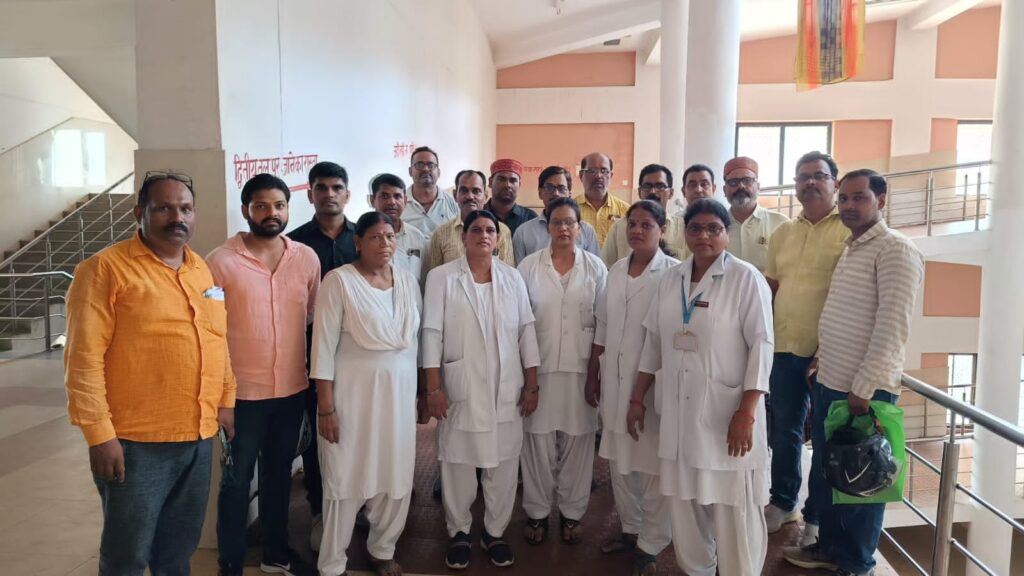 यूपीएस हटाओ ओपीएस लाओ के स्वास्थ्यकर्मियों ने की मांग