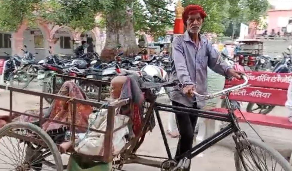 मरीज को ठेले से लेकर जिला अस्पताल पहुँचा भाई