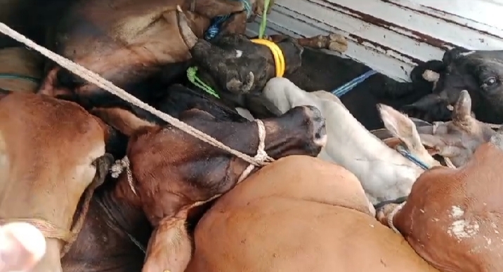 बता दे कि लक्ष्मणपुर की तरफ से भरौली के रास्ते तिरपाल से ढकी पिकअप गाड़ी में बेरहमी से ठूसकर मवेशियों को वध के लिए तस्कर बिहार ले जा रहे थे। जैसे ही चालक भरौली पीकेट पर पहुँचा, वैसे ही ड्यूटी पर तैनात पुलिसकर्मियों को देखकर चालक गाड़ी को दूसरी तरफ लेकर भागना चाहा। भागते समय गाड़ी कीचड़ में फंस गई। पुलिस मौके पर पहुंच कर गाड़ी को कब्जे में ले लिया। गाड़ी में सवार तीन पशु तस्करों में दो भागने में सफल रहे। जबकि एक को पुलिस ने मौके से गिरफ्तार कर लिया। कीचड़ में फंसी गाड़ी को पुलिस ने क्रेन के सहारे बाहर निकाला और ट्रैक्टर से खिंचवाकर थाने पहुंचाया। इस दौरान मौके पर ग्रामीणों की भीड़ जुट गई। ग्रामीणों का कहना था कि