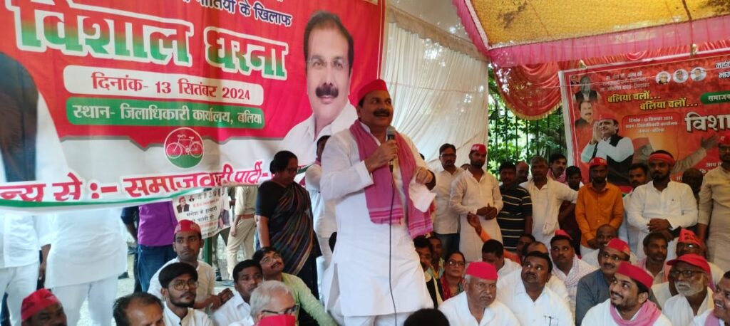 धरना सभा को संबोधित करते हुए पूर्व नेता प्रतिपक्ष रामगोविन्द चौधरी ने कहा कि हर राजनीतिक लड़ाई की शुरुआत बलिया से होती हैं और इस बार भी इस लोकतंत्र विरोधी सरकार के खिलाफ बिगुल बलिया ने बजाया हैं 27 में सफलता अवश्य मिलेगी। पूर्वांचल से चला यह विरोध का आंदोलन लखनऊ की कुर्सी हिलाएगा। सांसद सनातन पाण्डेय ने कहा कि बलिया के अधिकारी जनहित के सवाल पर जनता की सुने नहीं तो यह भृगु मुनि की धरती है यहां के लोग जवाब तुरंत और वाजिब देते हैं। सांसद रामाशंकर राजभर ने कहा कि पीडीए के लोगों एकजुट हो जाइए। समाजवादी पार्टी ही आपकी शुभचिंतक हैं इसे मजबूत बनाइए। घोसी के सांसद राजीव राय ने कार्यकर्ताओं का आह्वाहन करते हुए कहा कि आज ही से 2027 विधानसभा चुनाव के तैयारी में जुट जाइए। धरना सभा को मुख्यरूप से पूर्व मंत्री अम्बिका चौधरी,सिंकदरपुर विधायक मो रिजवी,जय प्रकाश अंचल, श्रीमती मंजू सिंह, ब्यास जी गोड, सुशील कुमार पाण्डेय “कांहजी” अरविन्द गिरी,मिठाई लाल भारती, संजय उपाध्याय, लक्षमण गुप्ता,डा. विश्राम यादव,यशपाल सिंह,रोहित चौबे, जलालु दीन जेडी, रजनीश यादव, साथी रामजी गुप्ता,श्रीभगवान वर्मा, राजेश गोड, राजन कनौजिया, रामेश्वर पासवान, अजय यादव, जय प्रकाश मुन्ना आदि ने संबोधित किया।अध्यक्षता संग्राम सिंह यादव ने किया।