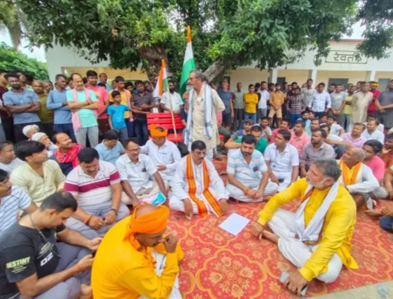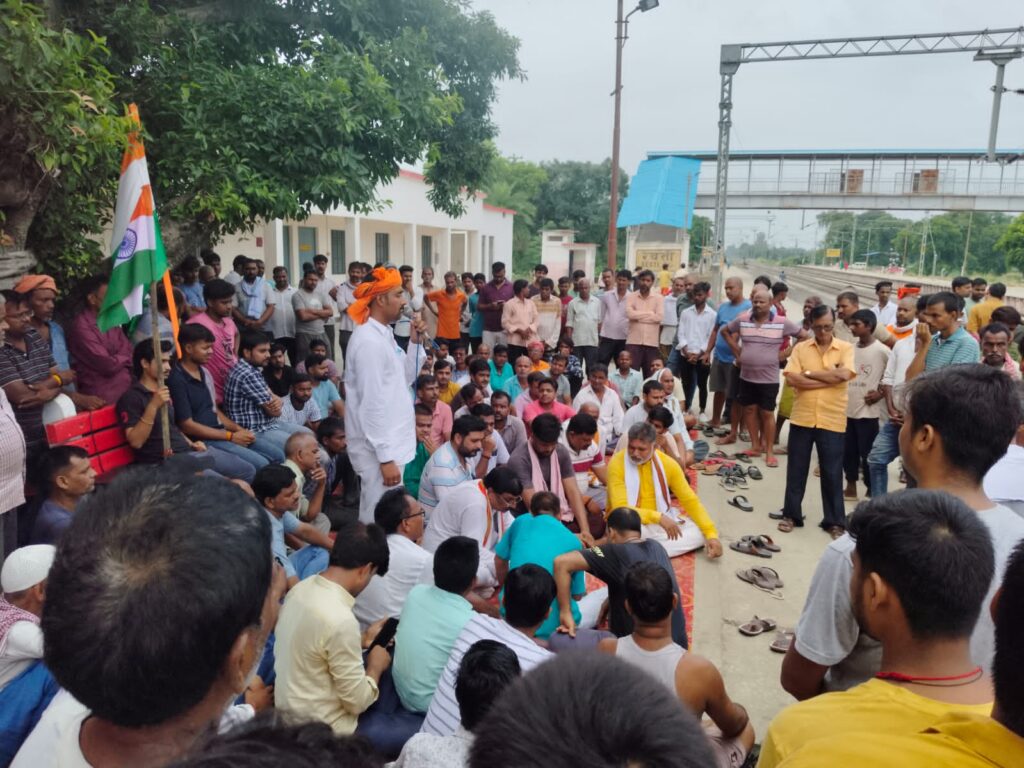 ट्रेन पर चढ़ते वक्त गिरा व्यापारी, कटा दोनों पैर, आक्रोशित व्यापारियों ने रेवती हाल्ट स्टेशन पर दिया धरना