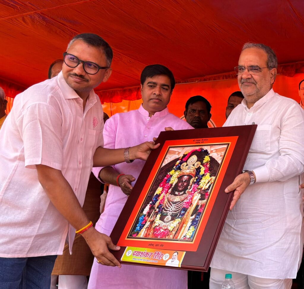 बलिया। बसंतपुर स्थित कार्यक्रम के दौरान परिवहन मंत्री दयाशंकर सिंह के अनुज धर्मेंद्र सिंह ने प्रदेश अध्यक्ष भूपेंद्र चौधरी को स्मृति चिह्न देकर सम्मानित किया। इस दौरान धर्मेंद्र सिंह ने प्रदेश अध्यक्ष को अंगवस्त्रम व प्रभु श्री राम का फोटो दिया।