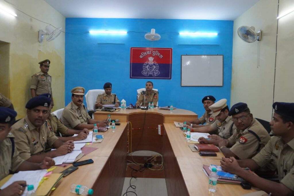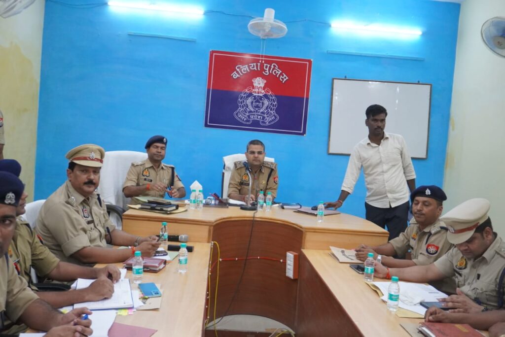 बलिया। पुलिस उपमहानिरीक्षक परिक्षेत्र आजमगढ़ वैभव कृष्ण ने पुलिस अधीक्षक विक्रान्त वीर के साथ शनिवार की शाम पुलिस लाइन बलिया सभागार में पुलिस अधिकारियों संग बैठक की। जिसमें अपराध नियंत्रण व कानून व्यवस्था की समीक्षा कर आवश्यक दिशा-निर्देश दिया।