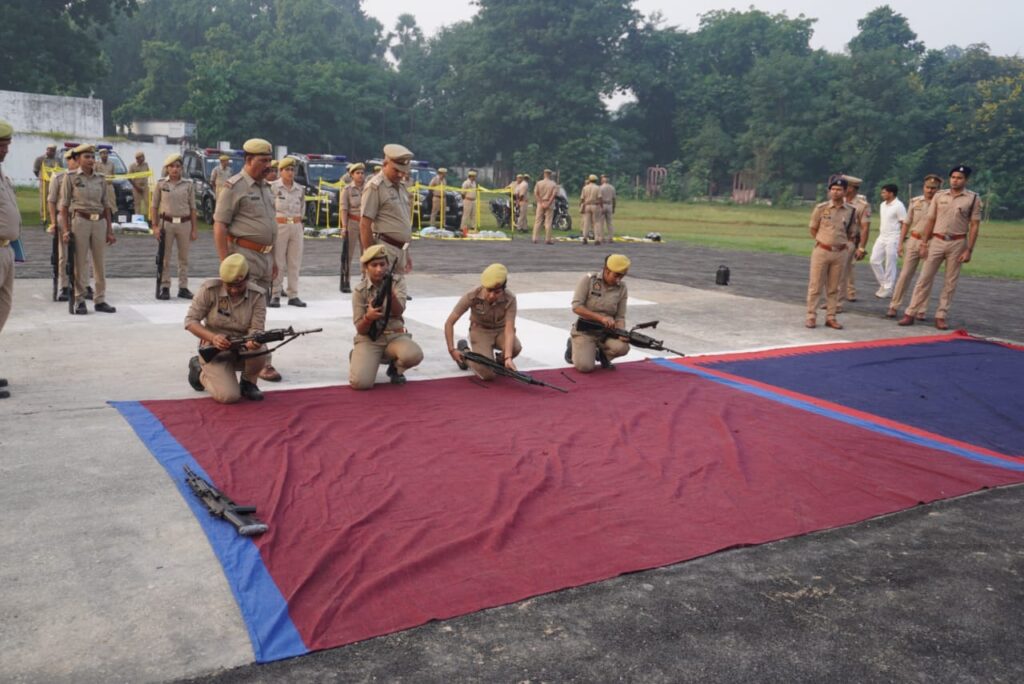 बलिया। शुक्रवार को पुलिस अधीक्षक विक्रान्त वीर द्वारा पुलिस लाइन परेड ग्राउंड में परेड की सलामी ली गई तथा परेड का निरीक्षण किया। निरीक्षण के पश्चात शारीरिक एवं मानसिक रूप से फिट रहने के लिए पुलिसकर्मियों की दौड़ लगवाई। निरीक्षण के क्रम ने यूपी -112 के वाहनों की गहनता से चेकिंग की गयी तथा पीआरवी पर तैनात पुलिस कर्मियों से वाहनों में उपलब्ध दंगा नियंत्रण व सुरक्षा उपकरणों के सम्बंध में जानकारी लेते हुए उसकी चेकिंग की गयी। इसके साथ ही शस्त्र ड्रिल की कार्यवाही करवाते हुए समस्त अधिकारी व कर्मचारियों को शस्त्रों के सम्बन्ध में जानकारी भी दी गई। तत्पश्चात पुलिस लाइन परिसर का निरीक्षण कर साफ-सफाई पर विशेष ध्यान देने हेतु बैरक व मेस का निरीक्षण किया और सम्बंधित को आवश्यक दिशा-निर्देश दिया।