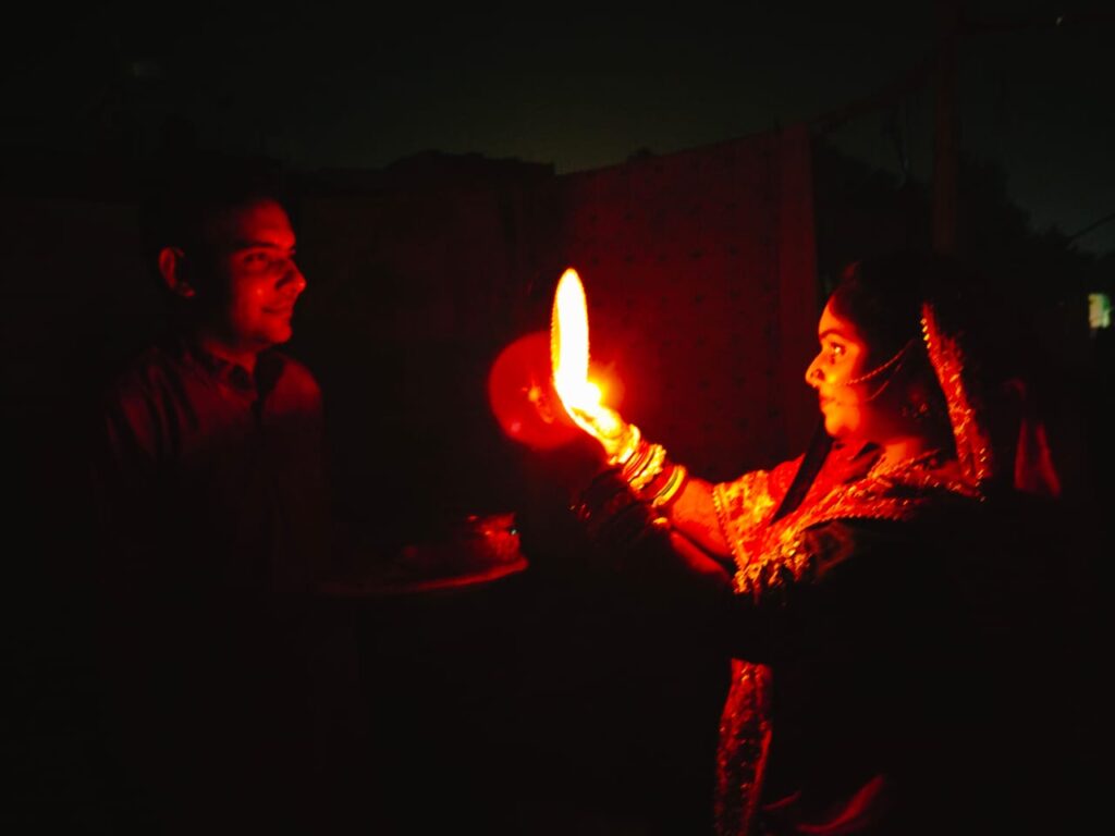चलनी से चांद व पति का दीदार कर महिलाओं ने तोड़ा व्रत