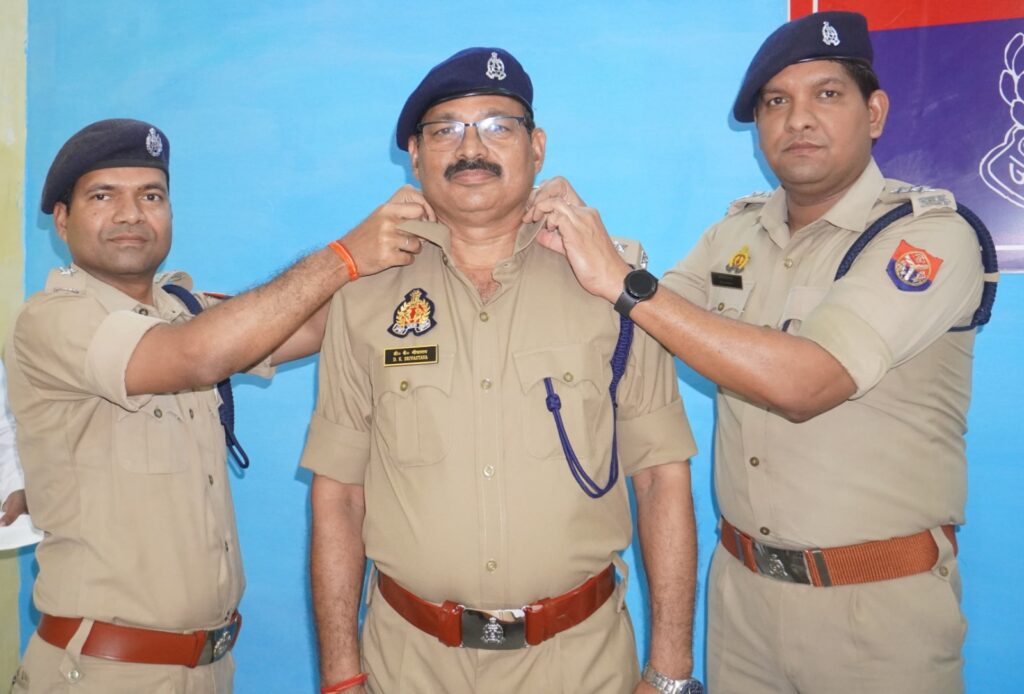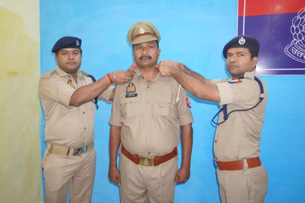 SP ने प्रमोशन पाने वाले निरीक्षक व आरक्षियों के कन्धे पर स्टार लगाकर दी बधाई