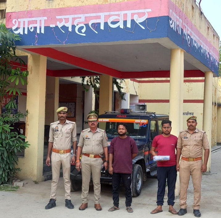 बलिया। मुखबीर की सूचना पर सहतवार पुलिस ने शुक्रवार को सहतवार यूनियन बैंक के पास स्थित चाय दुकान से दो अभियुक्तों को गिरफ्तार किया। गिरफ्तार अभियुक्तों के पास से छह मोबाइल व एक डेबिट कार्ड पुलिस ने बरामद किया। अभियुक्तों के विरुद्ध पुलिस ने संबंधित धाराओं में मुकदमा दर्ज कर चालान कर दिया। अभियुक्तगणों ने पूछताछ में अपना नाम व पता राजू उर्फ राज कुमार सरकार पुत्र दीनबन्धू सरकार निवासी RC 1072 गली नंबर- 13 प्रगति बिहार खोडा थाना खोडा गाजियाबाद तथा सत्यम तिवारी पुत्र स्व कमलेश तिवारी निवासी रौजा जालानपुर थाना बिसरख ग्रेटर नोएडा बेस्ट जनपद गौतमबुद्ध नगर बताया।