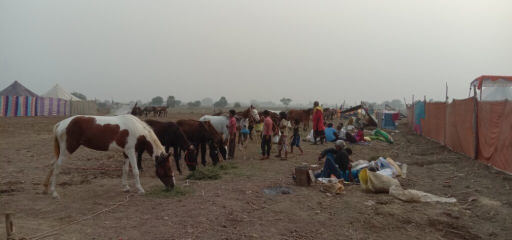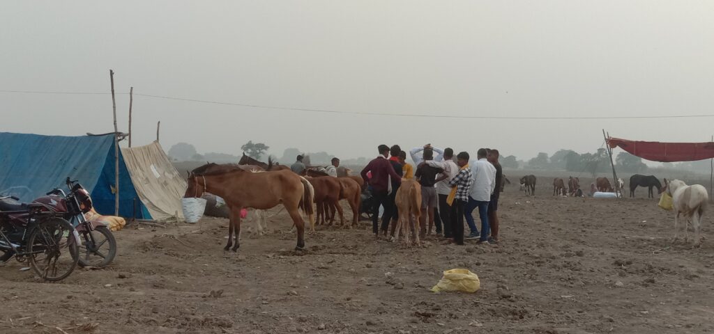 ददरी मेले के नंदीग्राम मेले पहुंचे कुछ घोड़े, खच्चर व गदहे