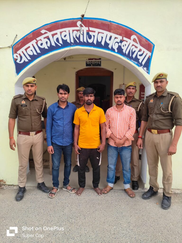 इसबीच मुखबिर से सूचना मिली कि उसमें काम करने वाले तीन व्यक्ति टाउन हाल के पास स्थित अपने आफिस से कुछ आवश्यक कागजात लेने की फिराक में है। अगर जल्दी किया जाय तो पकड़ा जा सकता है। इस सूचना पर विश्वास कर पुलिस टीम द्वारा मौके पर पहुँच कर आरोपी सचिन कुमार पुत्र जयनाथ राम निवासी गुरगुजपुर थाना रसड़ा, जितेन्द्र पुत्र रमेश चन्द्र राम निवासी विशुनपुरा थाना गड़वार बलिया व अनिल पुत्र राज मंगल प्रसाद निवासी रघुनाथ पुर थाना रसड़ा बलिया को गिरफ्तार किया गया। तीनों आरोपियों को संबंधित धाराओं में न्यायालय भेज दिया गया है।