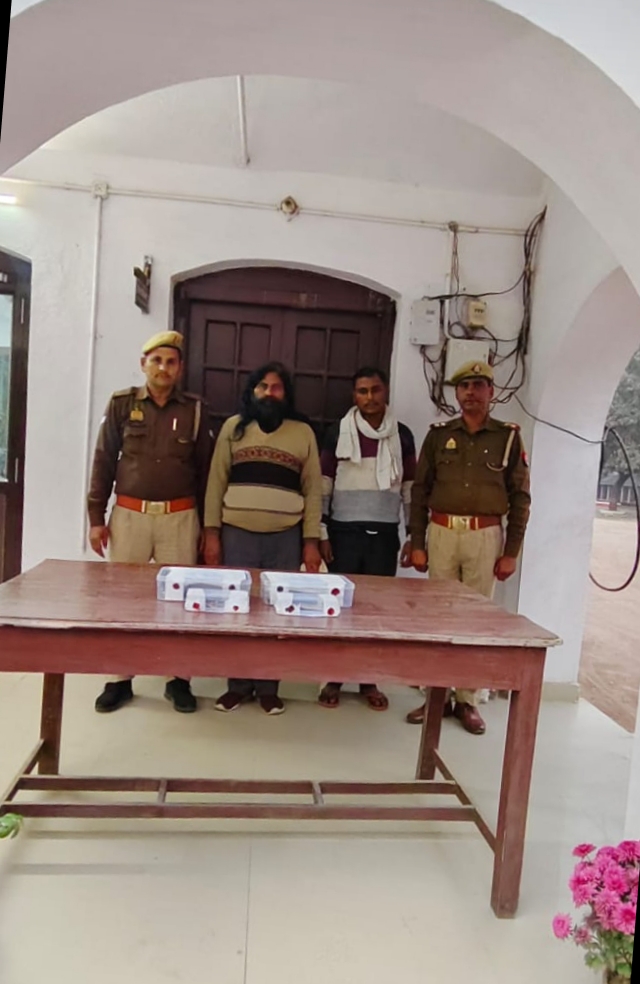 बलिया। लूट की घटना को अंजाम देने वाले दो लुटेरों को उभांव पुलिस ने शनिवार की रात क्षेत्र के मलेरा गांव स्थित नहर के पास से गिरफ्तार कर संबंधित धाराओं में मुकदमा दर्ज कर न्यायालय भेज दिया। लुटेरों के कब्जे से दो तमंचा व दो कारतूस बरामद किया गया। पकड़े गए लुटेरों ने पूछताछ में अपना नाम व पता लाल बहादुर पुत्र रामसूरत निवासी महदेवा थाना भीमपुरा जिला बलिया तथा सूरज प्रकाश पुत्र शिवधनी निवासी गोपालपुर निस्फी थाना रामपुर जनपद मऊ बताया गया। बताया कि 14 नवंबर 2024 को थाना उभाँव अन्तर्गत डम्बल बाबा की परती व मलेरा बाराडीह रोड पर हुई लूट की घटना को हम लोगों के द्वारा अंजाम दिया गया था। हम बड़ी व संगीन वारदात को अंजाम देने की नीयत से असलहो से लैस होकर तीन लोग मलेरा गांव में नहर के पास मौजूद थे, तभी आप लोगों को आते देख मेरा एक साथी संजय सक्सेना निवासी नगरा जिला बलिया मौके से भाग गया। आप लोगों ने पकड़ लिया।