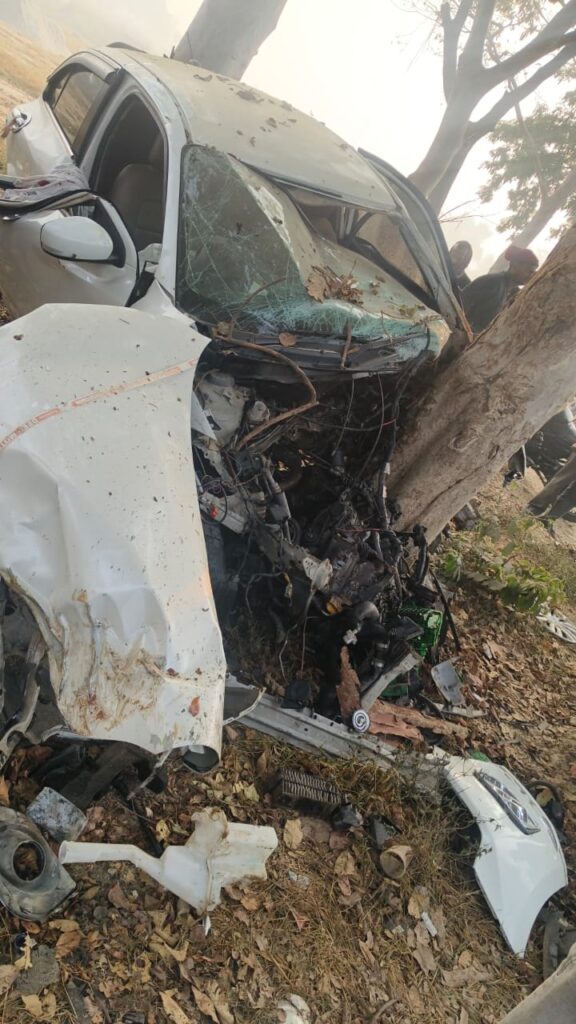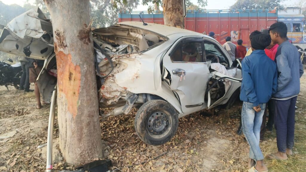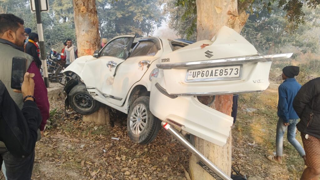गड़वार तिराहे के समीप पेड़ से टकराई कार, बाल-बाल बचा चालक