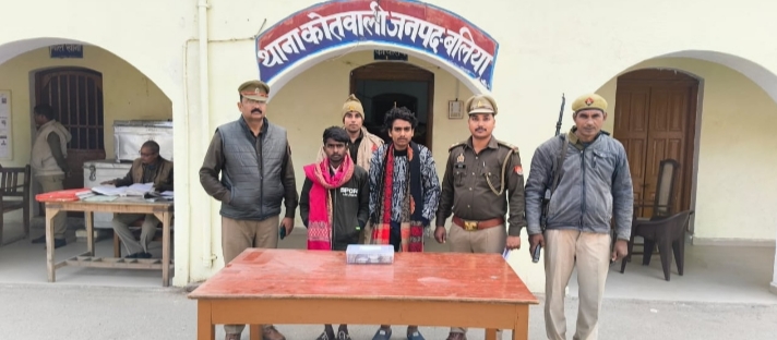 बलिया। शहर कोतवाली पुलिस ने मंगलवार को तीन दिन पूर्व एक व्यापारी के मुनीब को धोखा देकर पैसे उड़ाने वाले दो आरोपियों को रेलवे स्टेशन के मालगोदाम के पास से गिरफ्तार कर सम्बंधित धाराओं में मुकदमा दर्ज कर न्यायालय भेज दिया। वही पकड़े गए आरोपियों के पास से 2.5 लाख रुपया बरामद किया। पकड़े गए आरोपी ने पूछताछ में अपना नाम व पता बजंरगी पटेल उर्फ गोलू पुत्र राजेश पटेल निवासी जापलिनगंज थाना कोतवाली एवं सोनू बिन्द पुत्र बिजेंद्र प्रसाद निवासी जापलिनगंज थाना कोतवाली बताया।