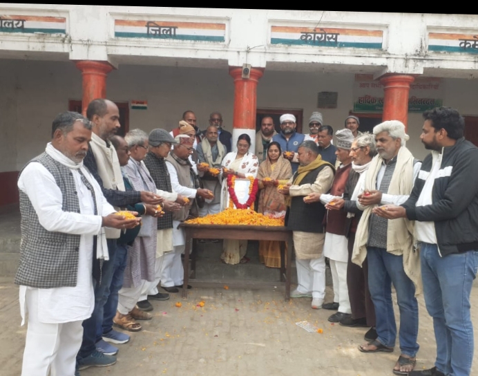 जिला मुख्यालय स्थित कांग्रेस भवन पर जहां कार्यकारी जिलाध्यक्ष उमाशंकर पाठक एवं पूर्व अध्यक्ष ओम प्रकाश पाण्डेय के नेतृत्व में कांग्रेसजनों ने पूर्व प्रधानमंत्री के चित्र पर माल्यार्पण एवं पुष्प अर्पित कर श्रद्धांजलि दिया। इसके साथ ही उनके व्यक्तित्व व कृतित्व पर प्रकाश डाला। उमाशंकर पाठक ने कहा कि हमने देश का कोहिनूर खो दिया। कहा कि देश के पूर्व प्रधानमंत्री तथा सबसे बड़े अर्थ शास्त्री के निधन से देश को अपूरणीय क्षति हुई है। जिसकी निकट भविष्य में भरपाई संभव नहीं दिख रही है। पूर्व अध्यक्ष ओम प्रकाश पाण्डेय ने कहा कि पूर्व प्रधानमंत्री ने कर्मचारियों के लिए जो किया,अभी तक कोई नहीं कर सका। इसके साथ ही दो मिनट का मौन रखकर गतात्मा की शांति के लिए प्रार्थना किया।