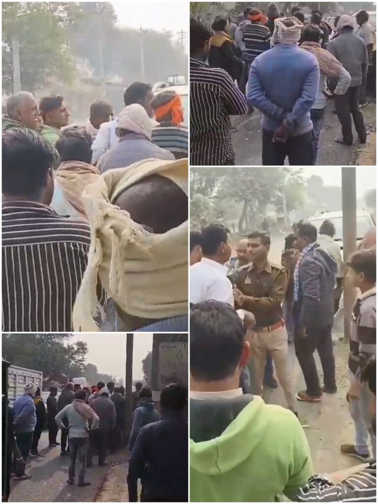 बनरही गांव स्थित जयपुरिया स्कूल के पास स्थानीय लोगों ने पूर्व मंत्री का हुआ विवाद