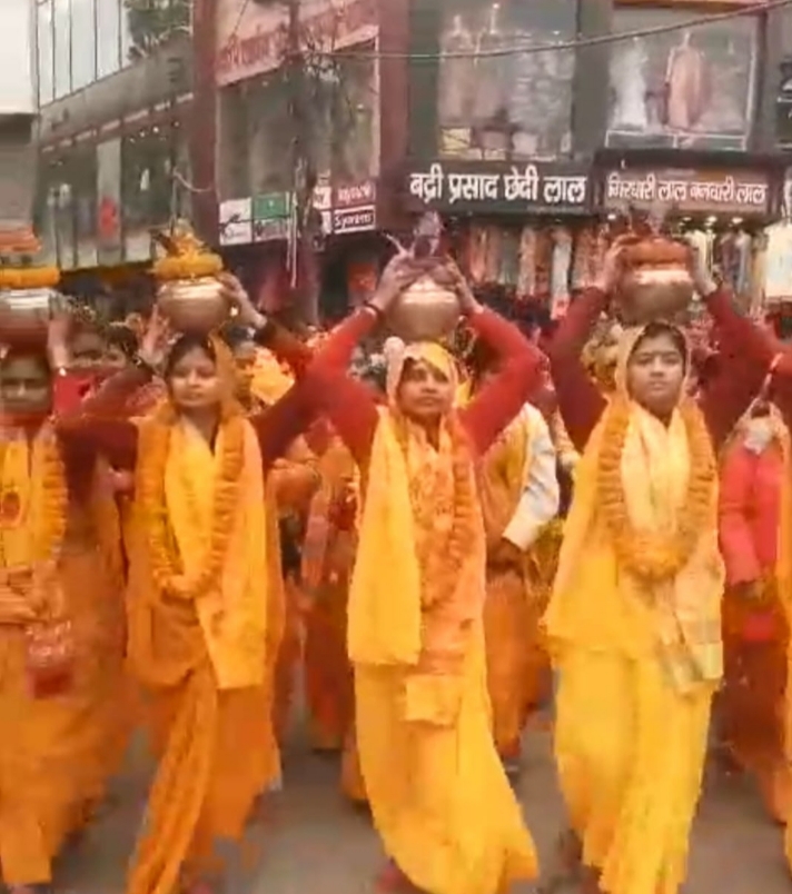 भव्य कलश यात्रा के साथ हुआ 108 कुंडीय गायत्री महायज्ञ का शुभारंभ